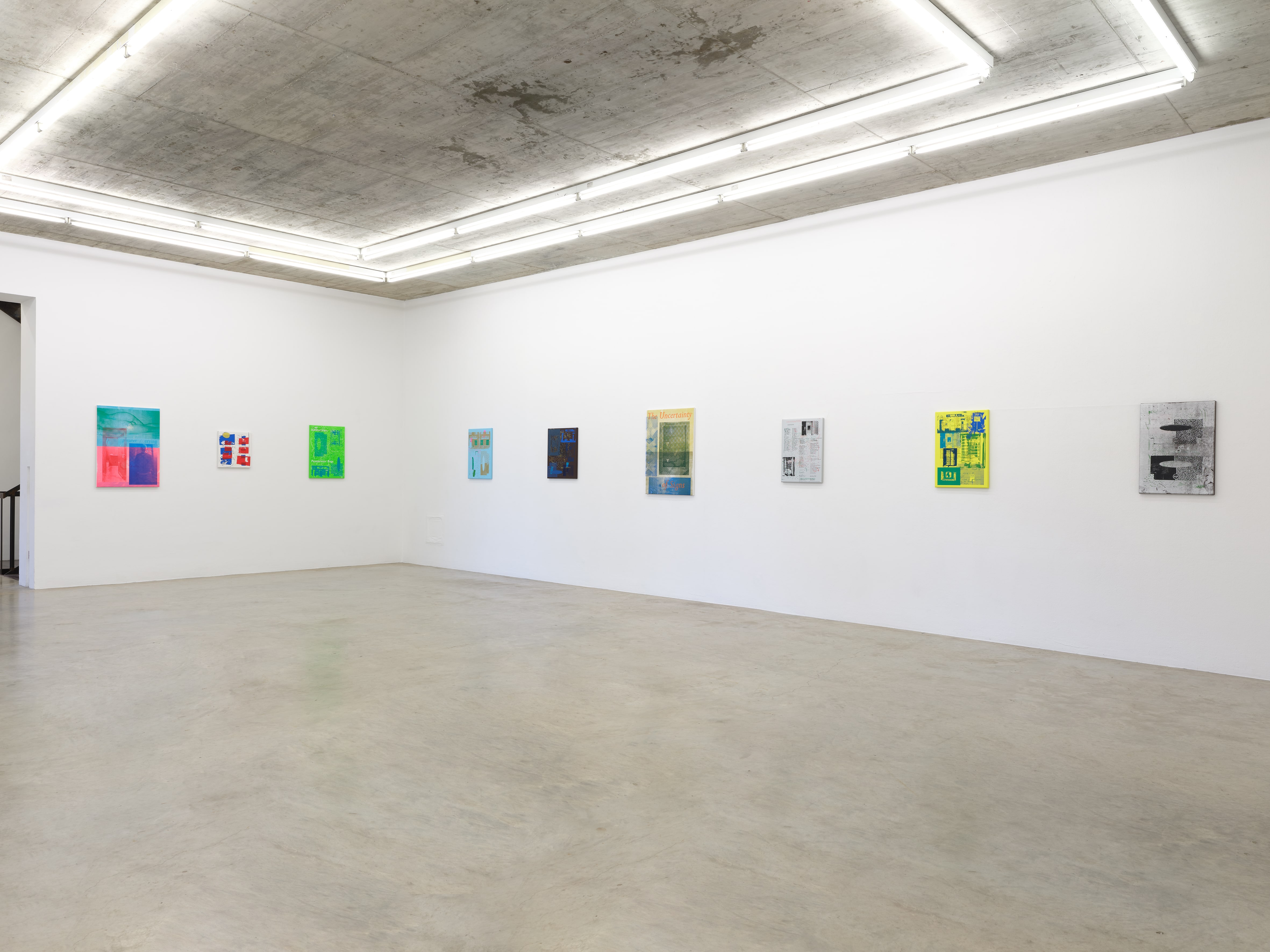 Complemented by patterns of boxes of tissue that were collected by the artist in a porn cinema over the course of a decade, a “No Cruising” sign from Griffith Park Boulevard in Silverlake, Los Angeles, notes from telephone sex advertisements from the early 2000s, interior and exterior views of sex clubs and cinemas, they all bear witness to an explicitly gay world and history in which Sameshima both participates and observes, collects its references, documents its disappearance and at the same time archives it artistically. Moreover, in each individual work of figures, the colliding subjects condense into a condensed retrospective.