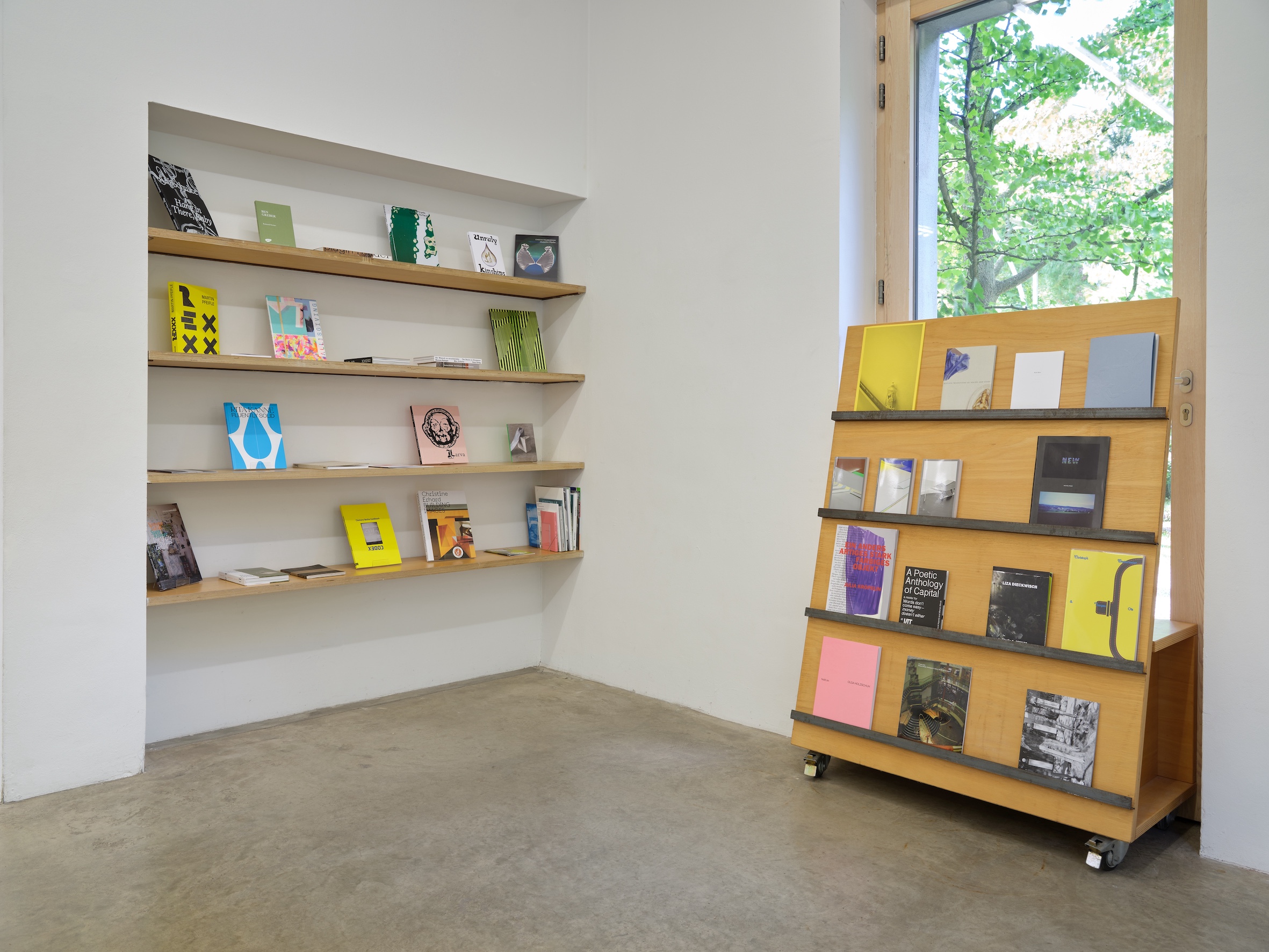 The publications sent in by former scholarship holders now form a separate layer within the curatorial concept and refer to the continuity and complexity of the program. As material and content-related traces, they document not only individual artistic developments, but also the collective history of the residency program. The selection includes publications from various disciplines – from artistic monographs to curatorial essays to experimental formats – and opens up a multifaceted archive. The books are embedded as a separate exhibition within the spatial and thematic structure of this year’s scholarship exhibition. They represent the connection between production and reflection, the layers between idea, implementation, and memory. In this way, the exhibition becomes a place where past and present overlap and new perspectives on the program and its impact emerge.