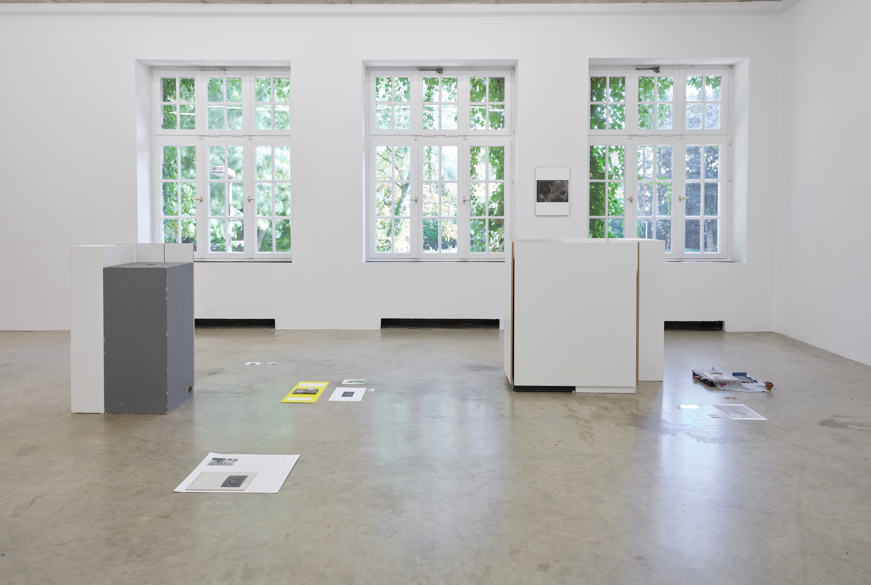With pedestals and window coverings from the Kunstverein’s inventory as well as other material, Wienk-Borgert develops the installation Untitled Constellation, whose elements are arranged on site. He collects, dismantles, and condenses his own and external materials in a temporary installation. The arrangement follows neither a hierarchical logic nor a clear narrative, but creates a visual, net-like structure. Books of different genres – such as an instruction manual or a collection of botanical illustrations – meet publications such as A Man Asleep (Georges Perec, 1991) or Pamphlet Architecture 28: Augmented Landscapes (2006), which refer to the nature, history, and instability of spaces. Untitled Constellation unites the objects into a field of tension that allows for sometimes familiar, sometimes irritating combinations and associative or ambiguous connections and references.