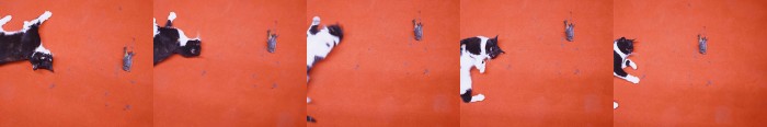 Nicht zuletzt bilden sie in einem Wechsel des Medienregisters das Motiv für einige der Siebdruckarbeiten, die gegenüberliegend dicht an dicht gehängt sind.