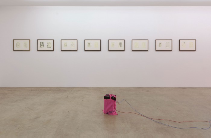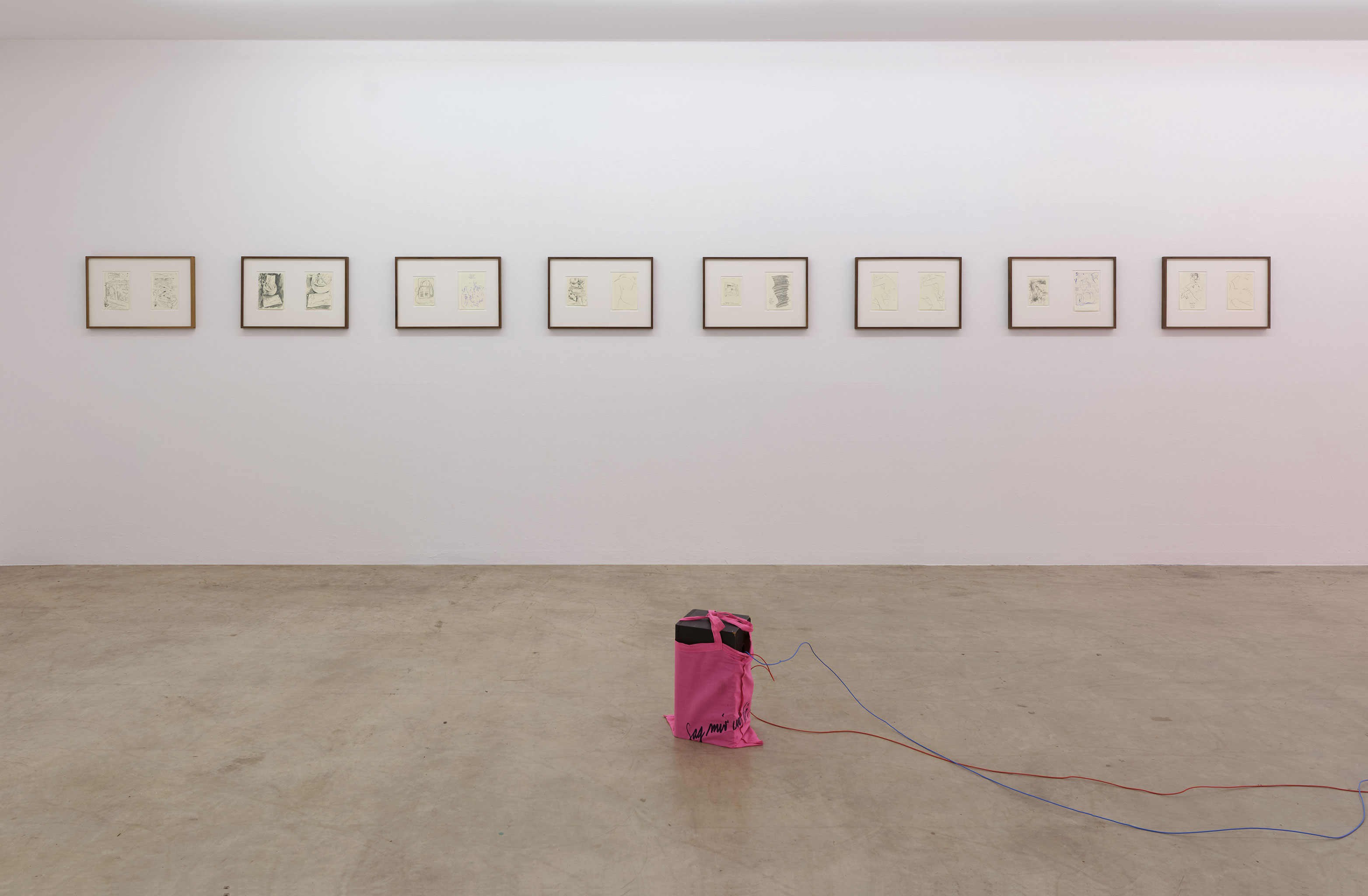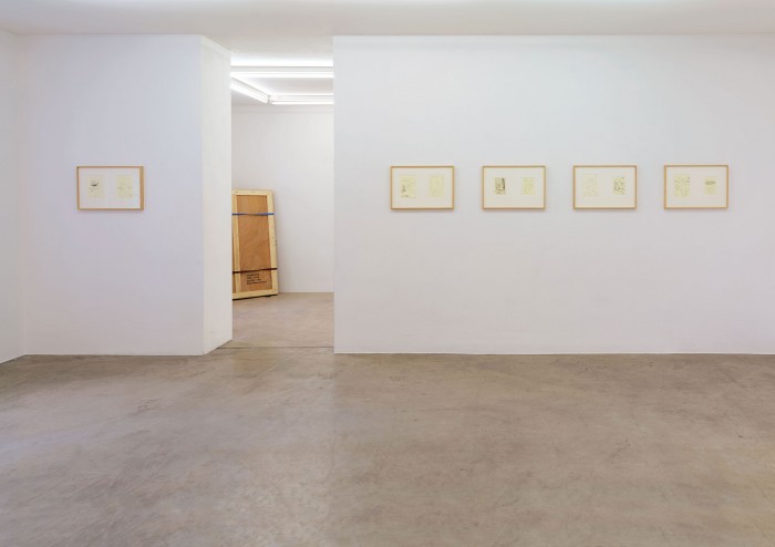 Im oberen Ausstellungsraum entfaltet schließlich eine Reihe von Zeichnungen ein dichtes Geflecht von Bezügen zwischen Ausstellungsraum, Archiv und Buch. Ursprünglich zwei Archivzusammenhängen des Künstlers entnommen, lassen sie Verfahren des Sammelns und der Ordnungsbildung sichtbar werden, ebenso markieren sie aber einen Vorgriff auf ein im Verlauf der Ausstellung erscheinendes Künstlerbuch.