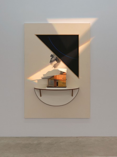 Die in die Fenster montierte Serie Le soleil se leve derrière l’abstraction (2016-26) fungiert mit ihren opaken Glaselementen als semi-transparente Membran, die zwischen den Lichtverhältnissen von Innen- und Außenraum vermittelt. Wenn dabei die lasierend-verwaschene Farbigkeit der Arbeiten auf aquarellierte, morgendliche Wolkenformationen zurückgeht, ist dies nicht nur Reverenz an eine besondere Lichtsituation. Die Wolke ist hier ebenso – frei nach Hubert Damisch – eine figurale Operation, die das darstellerische System der Malerei selbst sichtbar macht, etwas, das sich in seiner Fluidität der Form entzieht und zugleich Form hervorbringt. Diese Reflexion von Darstellung und Darstellbarkeit der Wahrnehmung unter ihren geo-klimatischen Bedingungen verbindet sich in drei, eigens in den Raum eingepassten Wandarbeiten (2025-26) mit Möglichkeiten von Selbstverortung und Habitat. Als Bühne des Alltäglichen dienen Architekturmodelle spielerisch der Frage nach Leben und Lebensraum.